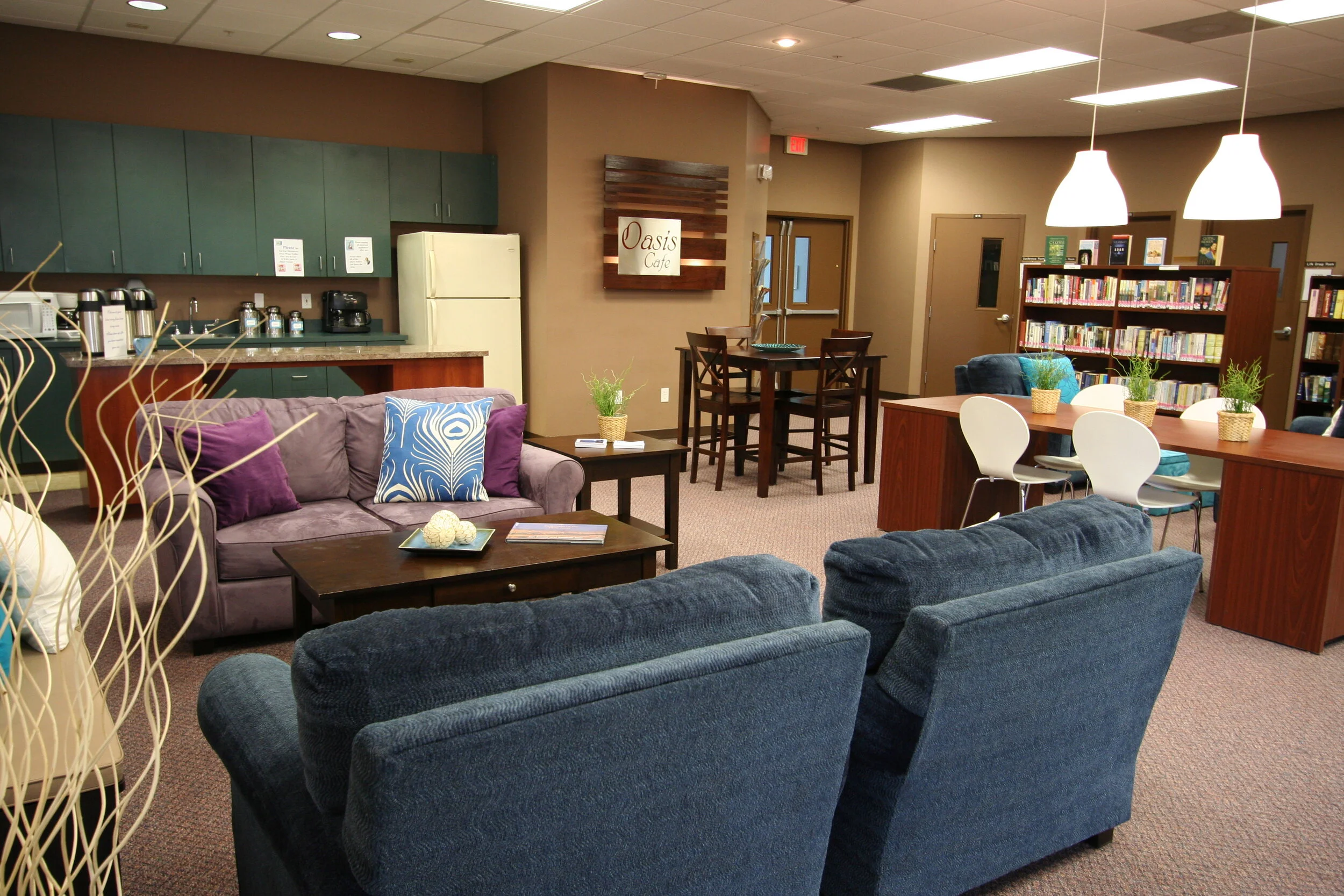 Church After: Transformed to a welcoming coffee bar and meeting space.